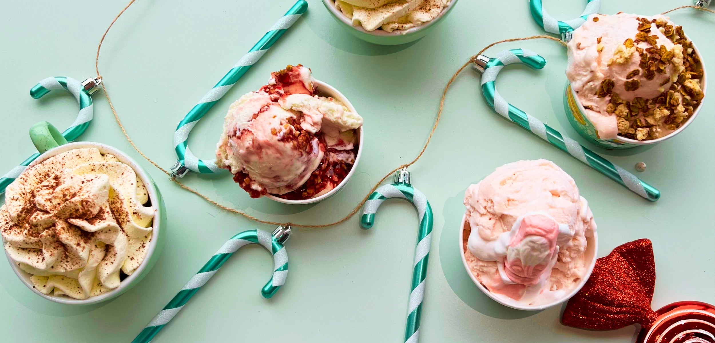 Strawberry ice cream folded with whipped cream and pieces of Christmas marshmallow.