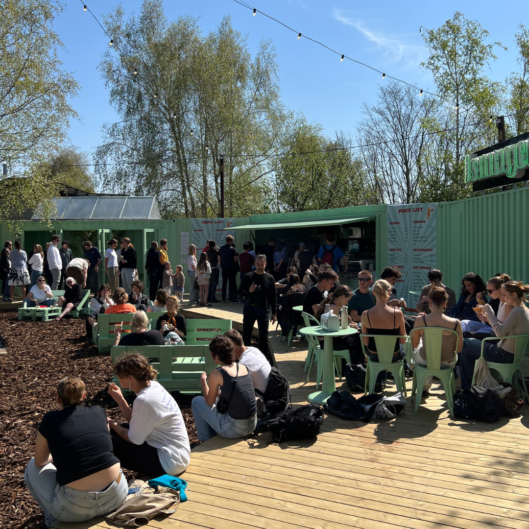 Langs Refshalevej, hvor der er afmærkede parkeringspladser tæt på butikken.